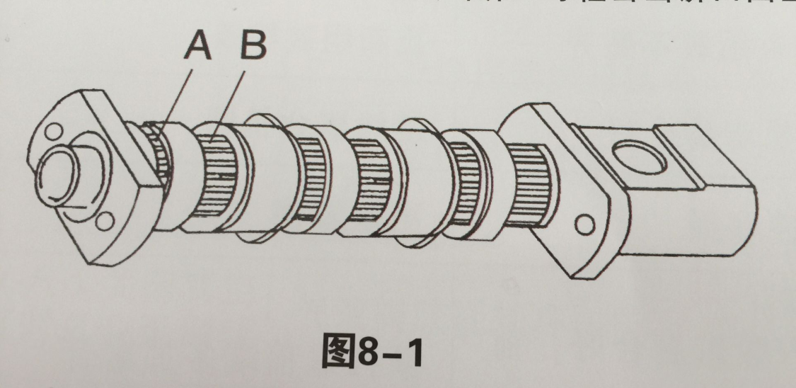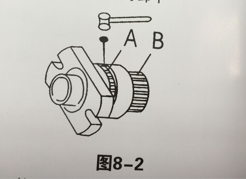 4.用撞擊力如(圖8-1)A、B兩個(gè)位置的同一根四方榨條沖出一根如圖8-2,其余則自動(dòng)散下,若需要更換出餅口可輕擊出餅口凸出邊,出餅口即可卸下。